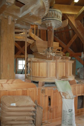 De tarwe die wij op de molen malen op een koppel blauwe stenen, komt van Noord-Hollandse bodem en vormt het grootste aandeel van het maalwerk. Naast tarwe malen we ook rogge, spelt en boekweit. Uiteraard zoveel mogelijk op windkracht maar in geval van te weinig wind kan er ook gemalen worden in de maalderij die sinds 2014 beschikt over een elektrisch aangedreven dubbel maalkoppel.